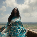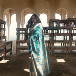 'Jaal Manjari' Firozi Jangla Zari Pure Silk Benarasi Handloom Sari