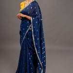 Raw and beautiful, this gorgeous Navy Blue Jamdani Tussar Khadi Sari is exquisitely weaved with barfi buttis in silver Zari and yarn meena, set against silver Zari Border and aanchal. Traditional, time-honored silken art is completely classic in its appeal!