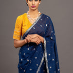 Navy Blue Zari Jamdani Pure Tussar Khadi Handloom Sari