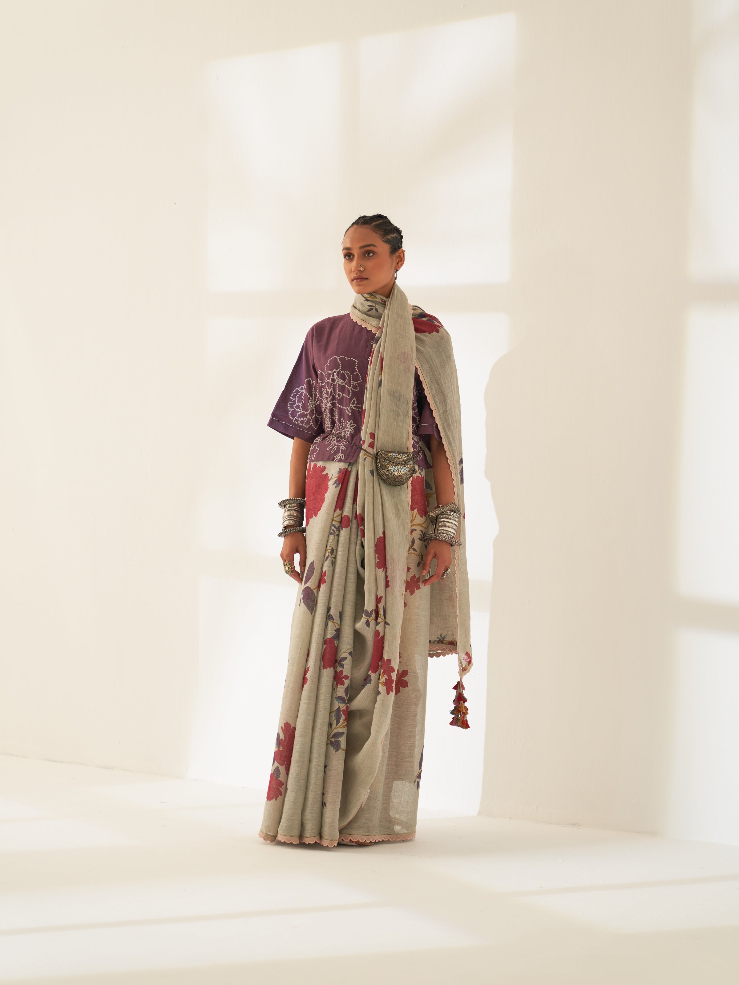 This season, Kasturi Woman focuses on minimalism. We celebrate saris that embody minimalism in a social setting- be it a cocktail or a day party. Linen Saris has evolved into a fashion statement, combining comfort, functionality, and style. Carefully designed floral print on 100-count handcrafted linen helps bring about an aura of effortless elegance about our Kasturi Woman. Cast aside the rules and make a statement with these stunning linen saris and embroidered blouses.