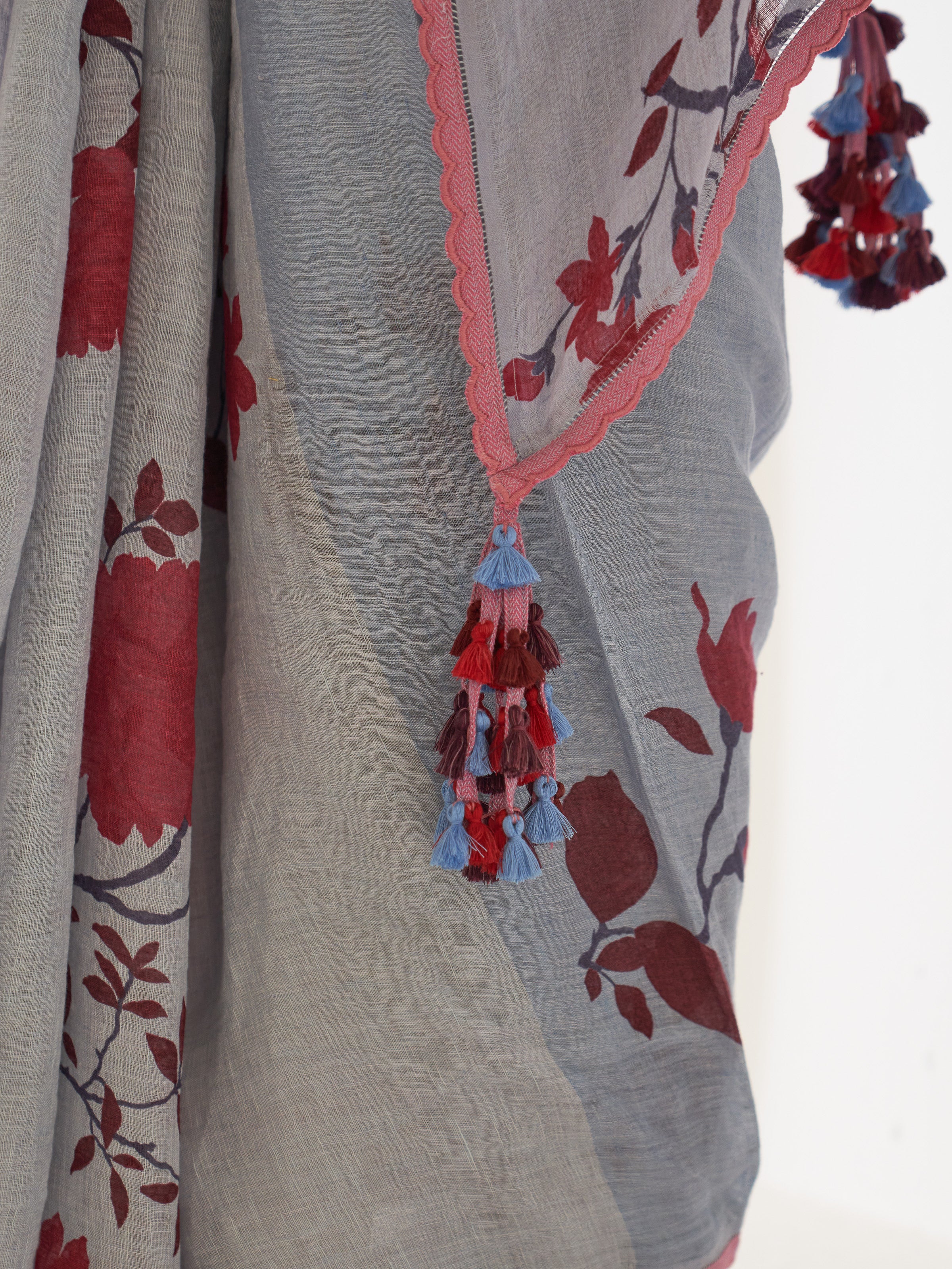 This season, Kasturi Woman focuses on minimalism. We celebrate saris that embody minimalism in a social setting- be it a cocktail or a day party. Linen Saris has evolved into a fashion statement, combining comfort, functionality, and style. Carefully designed floral print on 100-count handcrafted linen helps bring about an aura of effortless elegance about our Kasturi Woman. Cast aside the rules and make a statement with these stunning linen saris and embroidered blouses.