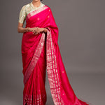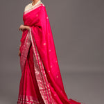 Fuschia Zari Jamdani Pure Tussar Handloom Sari