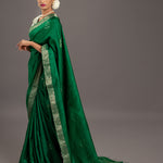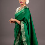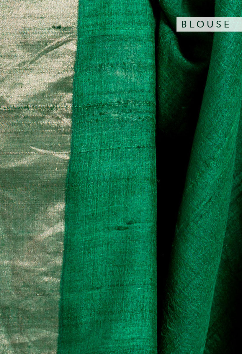 Forest Green Zari Jamdani Pure Tussar Handloom Sari
