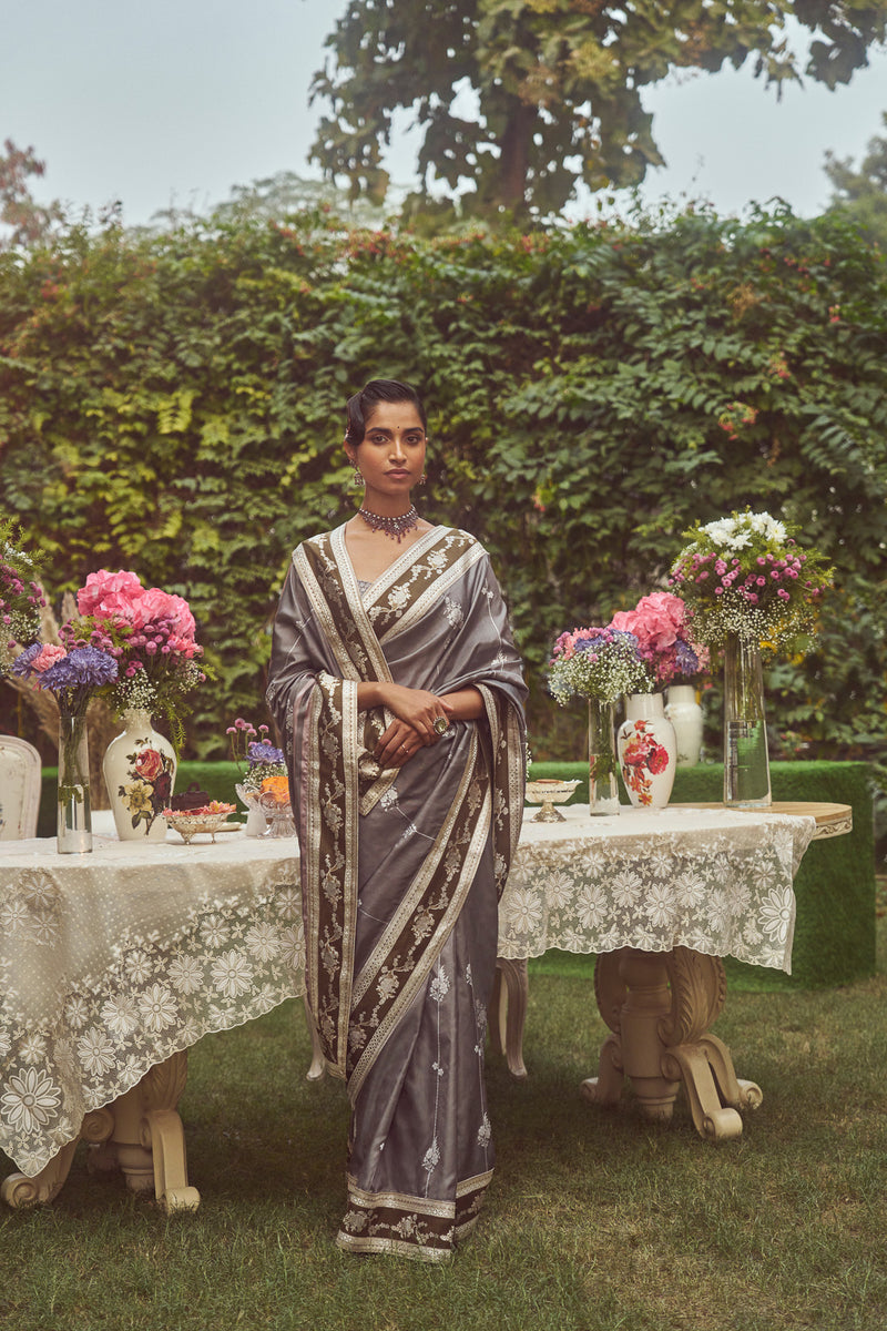 The Organza border adds a touch of contemporary lightness, creating a seamless blend of tradition and modern finesse. This saree, like its namesake, is a poetic masterpiece that conjures an image of ethereal beauty and grace. Much like the character it is named after, the saree exudes sophistication.