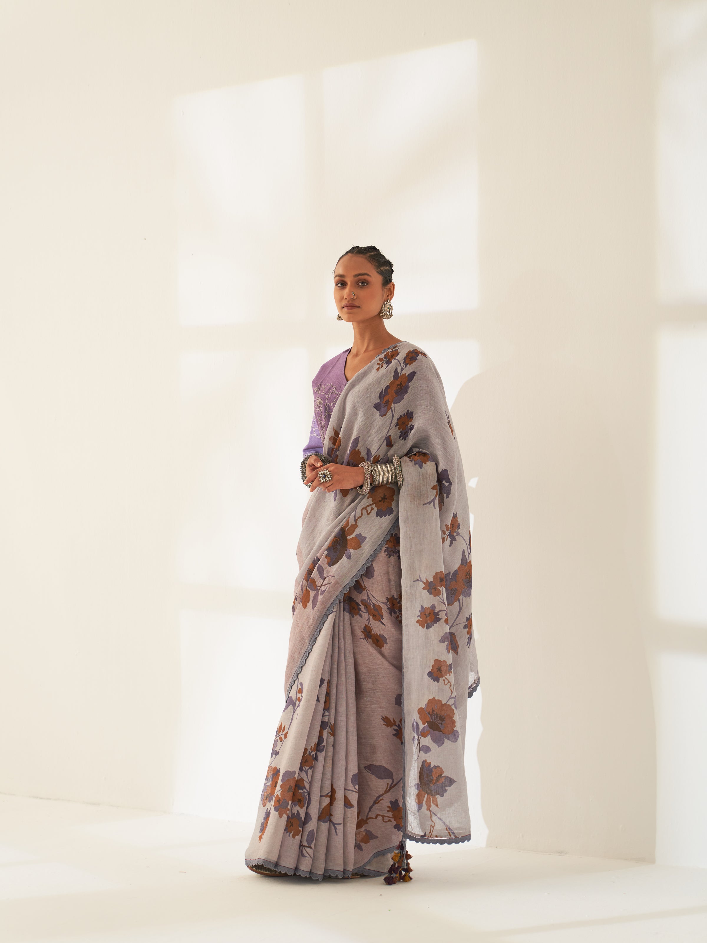 This season, Kasturi Woman focuses on minimalism. We celebrate saris that embody minimalism in a social setting- be it a cocktail or a day party. Linen Saris has evolved into a fashion statement, combining comfort, functionality, and style. Carefully designed floral print on 100-count handcrafted linen helps bring about an aura of effortless elegance about our Kasturi Woman. Cast aside the rules and make a statement with these stunning linen saris and embroidered blouses.