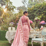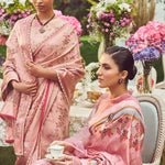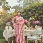 This exquisite Sari from the Piccadilly Collection is a mesmerizing tapestry in the enchanting Wedgewood Rose Pink with Tanchoi weave. In this saree, the name beholds a metaphorical representation of feminine strength and unwavering spirit, similar to that of Jane, a literary character.