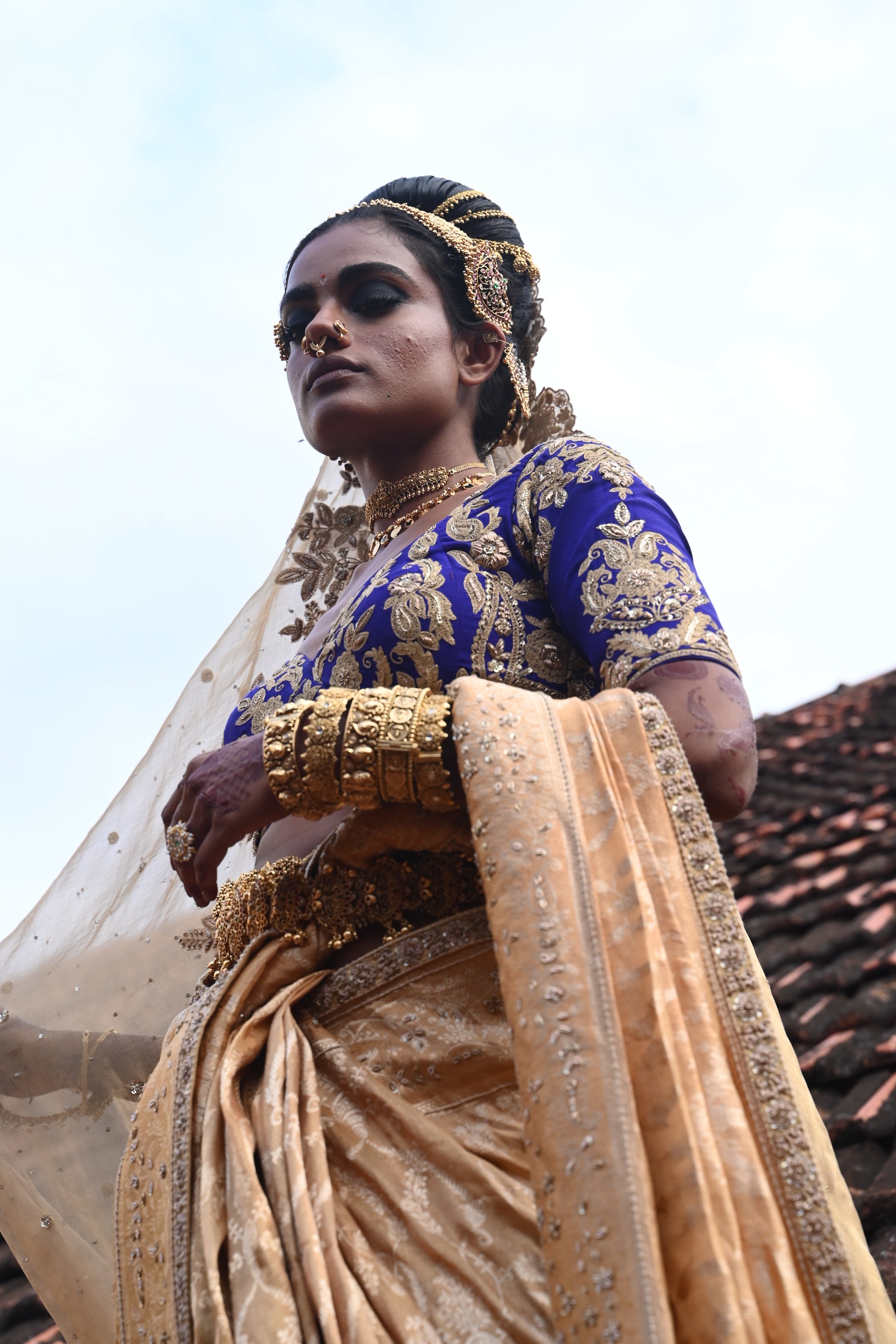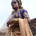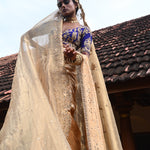 A 14ft soft gold Tissue veil featuring Dori with Zardozi work