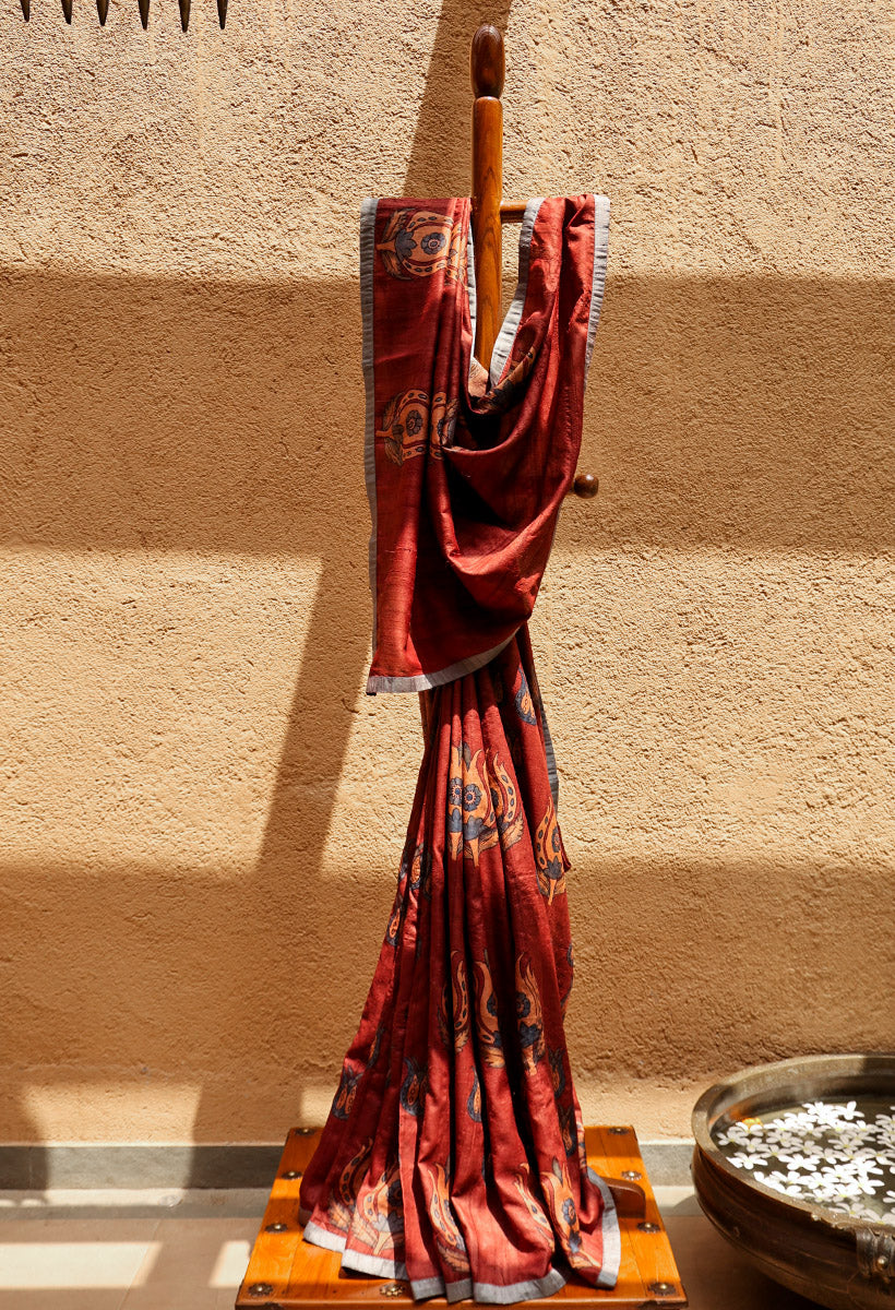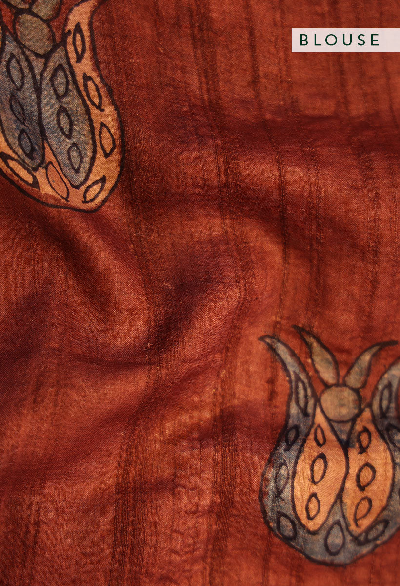 Lotus Pure Tussar Kalamkari Handloom Sari
