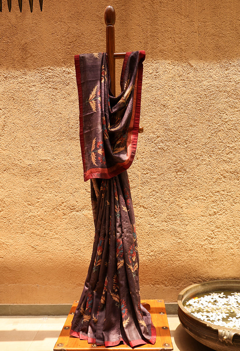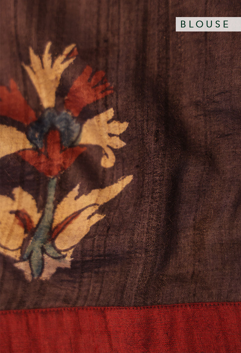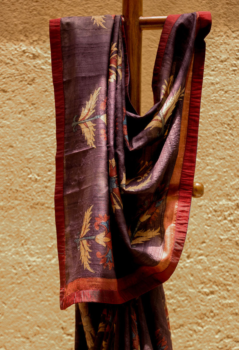 Hibiscus Pure Tussar Kalamkari Handloom Sari
