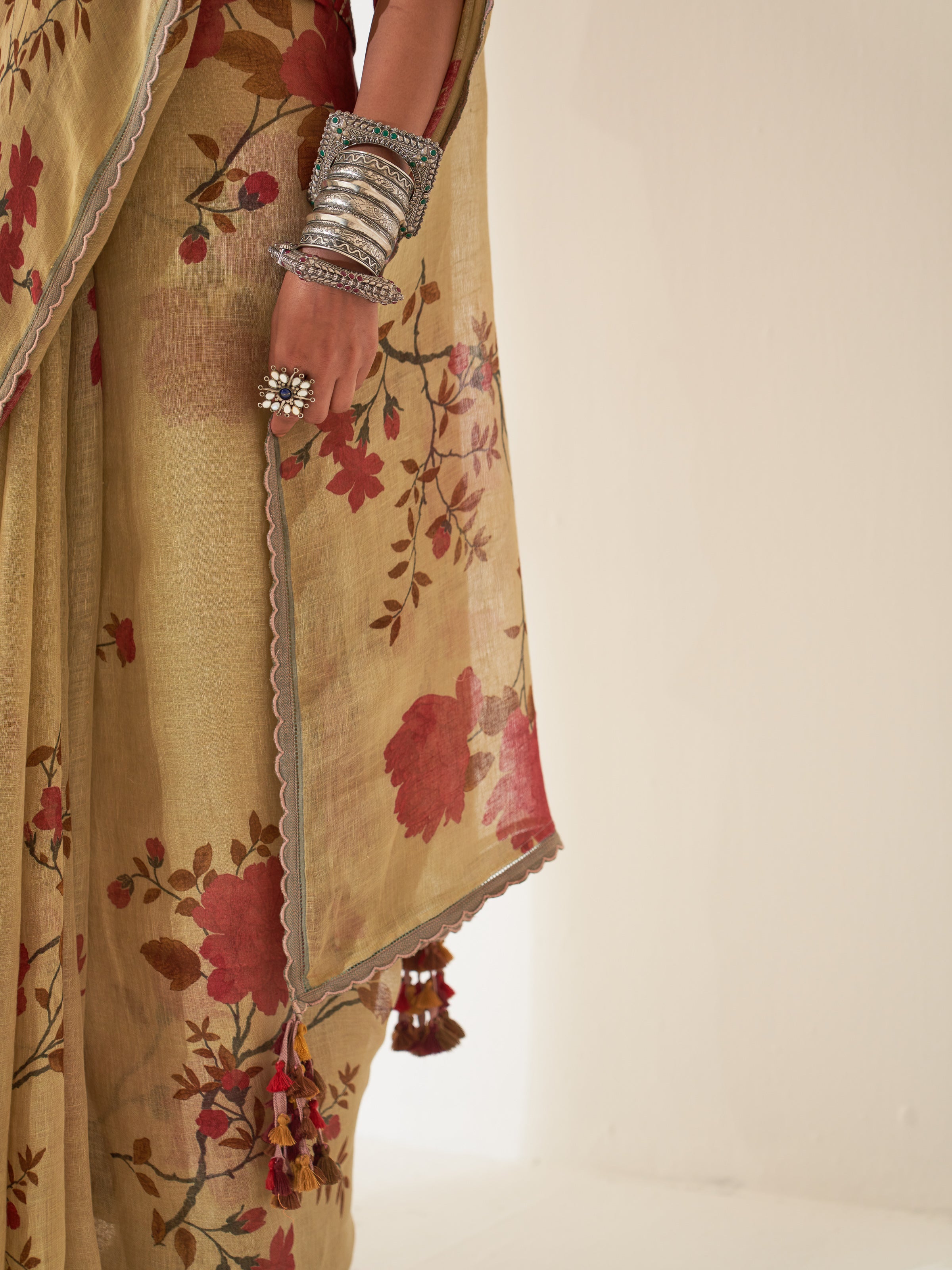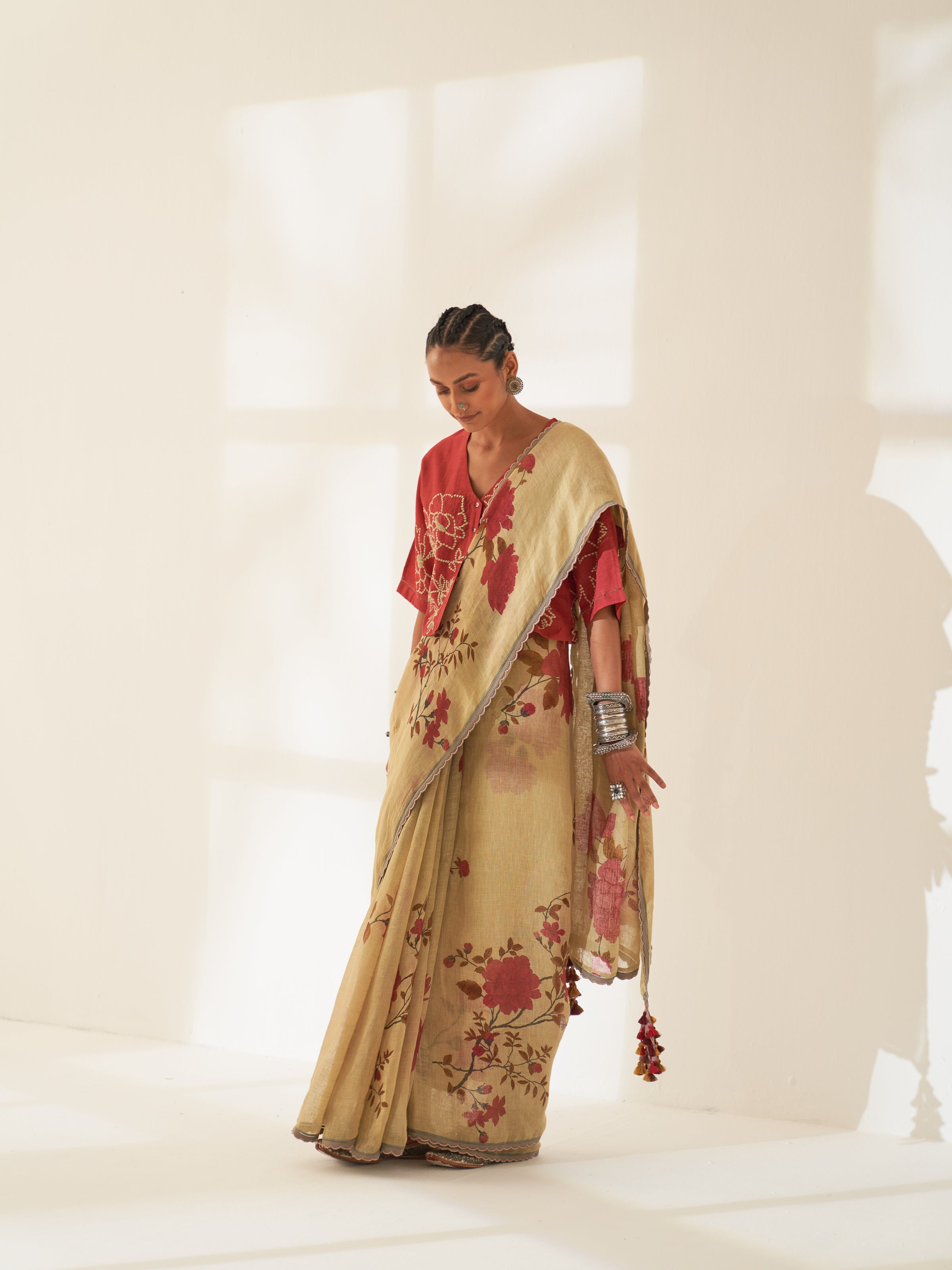 This season, Kasturi Woman focuses on minimalism. We celebrate saris that embody minimalism in a social setting- be it a cocktail or a day party. Linen Saris has evolved into a fashion statement, combining comfort, functionality, and style. Carefully designed floral print on 100-count handcrafted linen helps bring about an aura of effortless elegance about our Kasturi Woman. Cast aside the rules and make a statement with these stunning linen saris and embroidered blouses.