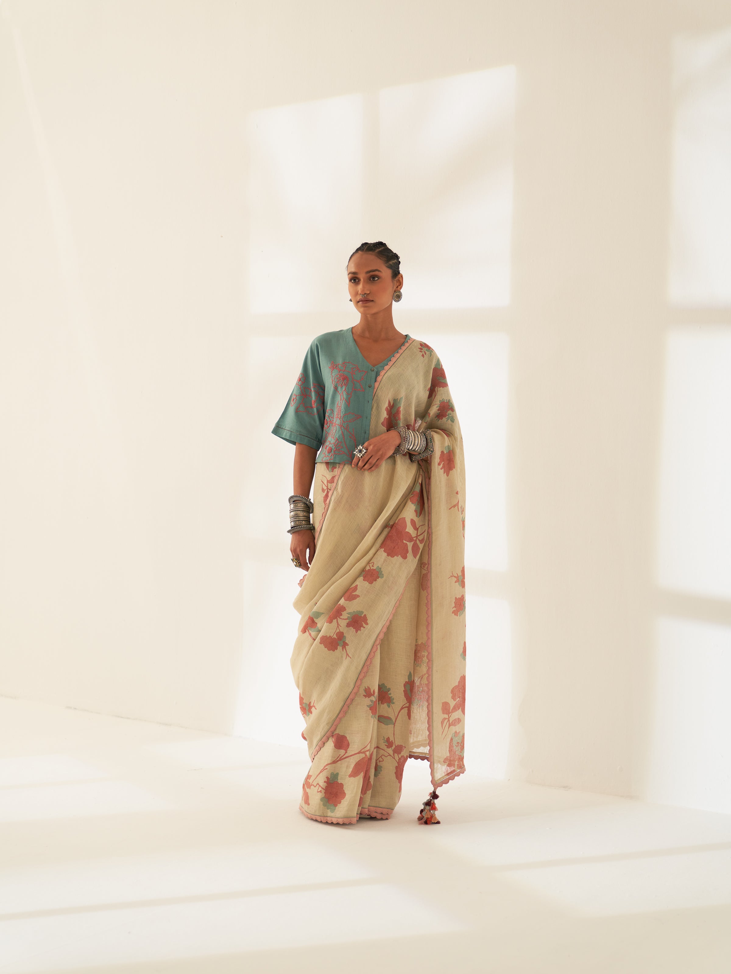 This season, Kasturi Woman focuses on minimalism. We celebrate saris that embody minimalism in a social setting- be it a cocktail or a day party. Linen Saris has evolved into a fashion statement, combining comfort, functionality, and style. Carefully designed floral print on 100-count handcrafted linen helps bring about an aura of effortless elegance about our Kasturi Woman. Cast aside the rules and make a statement with these stunning linen saris and embroidered blouses.
