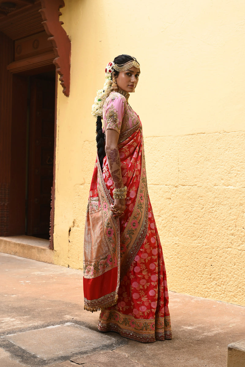 This saree is paired with the Uru (Gulaabi) Blouse.