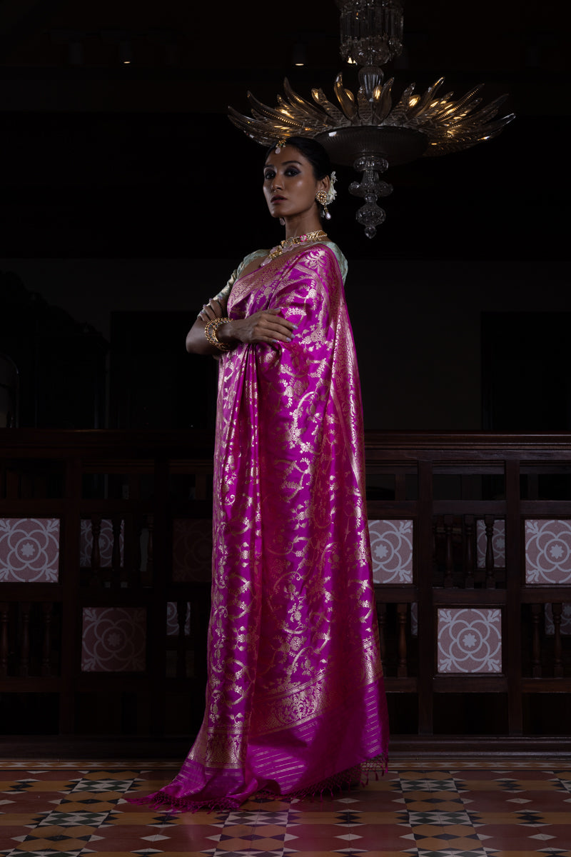 Surkh Surur' Rani Jaal Benarasi Handloom Sari